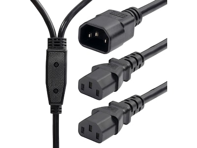 - Features IEC 60320 C14 to 2 x IEC 60320 C13 connectors