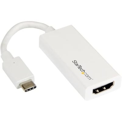 The StarTech.com® white USB-C to HDMI adapter supports a USB Type-C™ device such as a MacBook or ChromeBook™ laptop. It is backward compatible with 1080p displays. This cable is great for home, office or other work environments. It is compatible with Thunderbolt™ 3 ports. This cable is perfect for BYOD applications at the office. It supports Ultra HD video resolutions up to 4K. This cable is suitable for use with USB-C devices that pass a DisplayPort video signal.