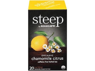 Enjoy a relaxing cup of tea anytime with this box of 20 Steep by Bigelow organic chamomile citrus tea bags.