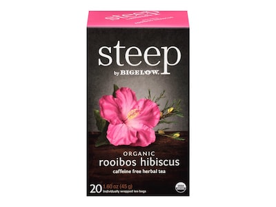Relax with the sweet aroma of these Steep by Bigelow rooibos hibiscus herbal tea bags.
