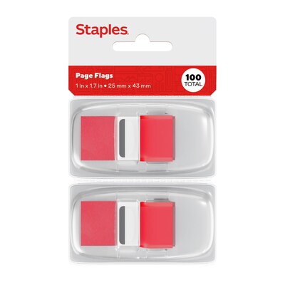 Outfit your desk with this flags and pop-up dispenser set. The bright red color makes the flags easy to notice, while the blank design offers an easy way to label pages. Two pop-up dispensers provide easy access to the flags, so you can grab one quickly as you read or take notes. Each flag in this Staples Stickies flag and dispenser set comes with an adhesive backing to stay securely in place.