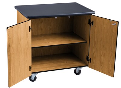 Storage cabinets with doors are furniture items used to keep your belongings tidy. You can use storage cabinets for virtually anything, including pet supplies, electronics, books, etc. Storage shelves with doors have a more aesthetically pleasing look so they blend in well with modern office furniture.