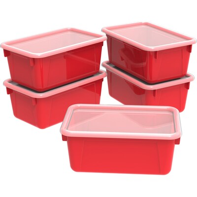 Storex 5.1"H x 7.8"W Plastic Small Cubby Bin with Lid, Red, 5/CT (62407U05C)