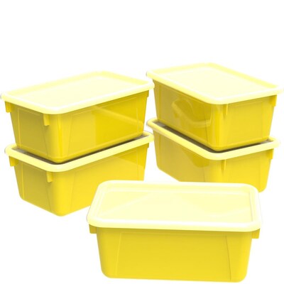 Storex 5.1"H x 7.8"W Plastic Small Cubby Bin with Lid, Yellow, 5/CT (62410U05C)