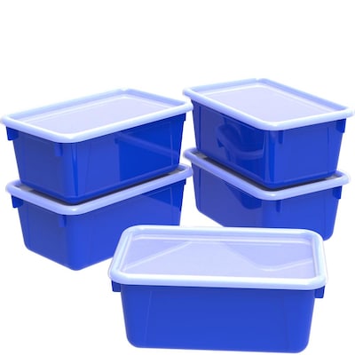 Storex Plastic Small Cubby Bins with Lids, 5.1" x 7.8" x 12.2", Blue/Clear, 5/Carton (62408U05C)