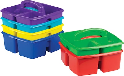 Storex Small Classroom Caddies with 3 Compartments, 5.25" x 9.25" x 9.25", Assorted Colors, 6/Carton (00940U06C)