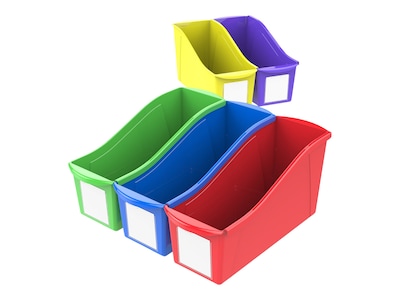 Keep books, catalogs and reference materials in reach and properly sorted with these colorful book bins. Each one can link with its neighbors for stability, and included label pockets help you keep materials organized. The 12-inch-deep interiors accommodate larger books and letter-sized folders, while the front and rear handles make it easy to move these Storex book bins to wherever you need them.