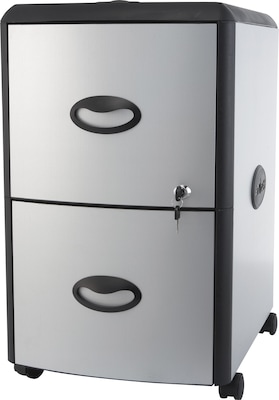 Storex Two-Drawer Mobile File Cabinet with Lock (61351U01C) has locking casters and locking drawers. Made with durable polypropylene construction which allows this cabinet to be stackable. Moisture and rust resistant as well.
