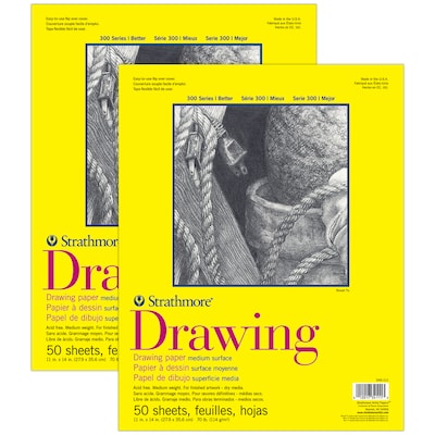 With a medium surface finish, this pad offers good erasure with pencil & colored pencil & readily accepts charcoal & sketching sticks. The Strathmore 300 Series Drawing Pad is also rated good for marker, mixed media, soft pastel, & oil pastel. The history of Strathmore Paper Company began on St. Patrick's Day in 1892 when its founder, Horace Moses, opened the Mittineague Paper Mill in West Springfield, MA. Strathmore has been a leading supplier of fine art papers for 130 years & founded with the belief that better paper makes better art. Strathmore provides artists of all levels with one of the widest ranges of quality surfaces for producing beautiful works of art, no matter the choice of medium. Listening to the needs of artists & providing inspiration, education, & innovating new products is at the core of what matters to Strathmore. The Strathmore 300 Series provides art students & intermediate hobbyists a range of better quality paper for quick studies, technical practice & final pieces in art class or at home. Including a wide variety of surface types, artists working with watercolor paint, acrylic paint, oil paint, pastel, colored pencil, charcoal, marker, pen, ink & more have a curated pad customized for their needs. Trusted by art teachers & affordable for parents & students, the 300 Series is the best way to help build confidence in intermediate artists! Sold as a pack of 2.