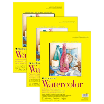 Best suited for experimenting & practicing techniques when heavier washes & reworks are required. This paper has two distinct finishes: a popular cold press on top for most watercolor work & on the other side a smooth finish ideal for detail work. The Strathmore 300 Series Watercolor Pad is perfect for water-based media including watercolor, tempera, acrylic, gouache, & poster paint. The history of Strathmore Paper Company began on St. Patrick's Day in 1892 when its founder, Horace Moses, opened the Mittineague Paper Mill in West Springfield, MA. Strathmore has been a leading supplier of fine art papers for 130 years & founded with the belief that better paper makes better art. Strathmore provides artists of all levels with one of the widest ranges of quality surfaces for producing beautiful works of art, no matter the choice of medium. Listening to the needs of artists & providing inspiration, education, & innovating new products is at the core of what matters to Strathmore. The Strathmore 300 Series provides art students & intermediate hobbyists a range of better quality paper for quick studies, technical practice & final pieces in art class or at home. Including a wide variety of surface types, artists working with watercolor paint, acrylic paint, oil paint, pastel, colored pencil, charcoal, marker, pen, ink & more have a curated pad customized for their needs. Trusted by art teachers & affordable for parents & students, the 300 Series is the best way to help build confidence in intermediate artists! Sold as a pack of 3.
