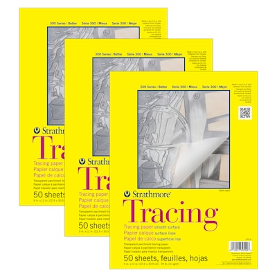 Strathmore 300 Series 9" x 12" Tape Bound Tracing Sketch Pad, 50 Sheets/Pad, 3/Bundle (STTP370903-3)
