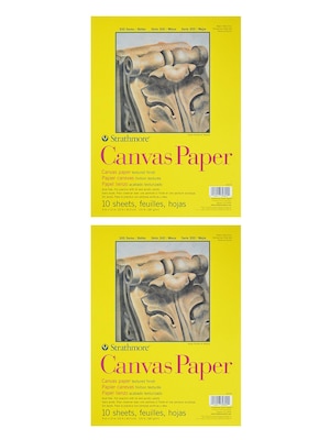 300 Series Canvas Pads by Strathmore provide an acid-free, canvas-textured paper in the convenience of a pad. Canvas pads offer easy storage and portability when compared to stretched canvas. These flat sheets serve as a perfect substrate for practice and experimentation with a variety of mediums including oils, acrylics, and sketching tools. This 115 lb. (187 gsm) canvas-textured paper benefits student artists and plein air painters who travel to various locations. Canvas Pads measure 9 in. x 12 in. and are sold as a pack of 2 pads with 10 sheets each.