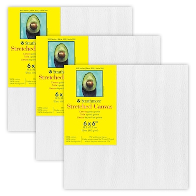 Strathmore 300 Series Primed White Stretched Canvas, 6" x 6", 3/Pack, 3/Bundle (STT31406-3)