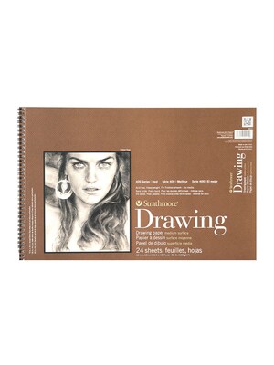 Strathmore 400 Series drawing paper pads contain acid-free, heavy weight, durable, medium surface 80 lb. drawing paper. Natural white paper is ideal for illustrations and final drawings. Suitable for any dry media, pen, ink, and light washes. Pads contain 24 sheets and are spiral bound across the top (the first measurement listed). Pads 8 in. x 10 in. and larger are micro-perforated for clean and easy sheet removal.