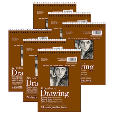 Strathmore 400 Series 6" x 8" Wire Bound Drawing Sketch Pad, 24 Sheets/Pad, 6/Bundle (STTP400206-6)