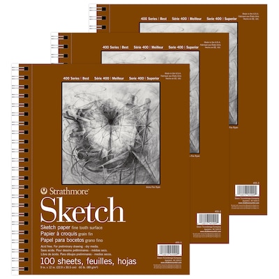 Strathmore 400 Series 9" x 12" Wire Bound Sketch Pad, 100 Sheets/Pad, 3/Bundle (STTP455303-3)