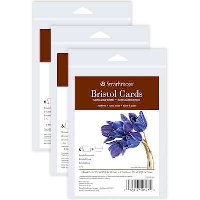 Strathmore 400 Series Bristol Cards & Envelopes, 4.875" x 3.5", White, 6/Pack, 3 Packs/Bundle (STTP10526-3)