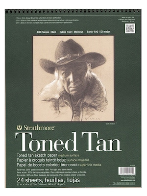 These Strathmore 400 Series Toned Sketch Paper pads feature 100% recycled, acid-free toned sketch paper. This paper is great for light and dark media, including graphite, chalk, charcoal, sketching stick, markers, china markers, colored pencils, pens, and white gel pens. These pads are wire bound with a micro-perforation, which allows you to keep the sketches as actual size sheets for display or future reference. Pads come in a variety of sizes, and contain 30% post-consumer fiber.