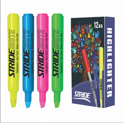 StrideBrite Tank Highlighters, Chisel Tip, Assorted Colors, 12/Pack (42012)
