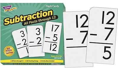 Content-rich math cards do their job, teaching students new skills in a fun way. This educational aid helps students build subtraction skills. Equations are presented 2 ways to reinforce skills. Complete tables for all numbers 0-12. Self-checking, answers on back. Sturdy cards and storage box. Students will delight in mastering new skills. No-see-through cards with quick-sorting, rounded corners. quick-sorting, rounded corners. Includes 169 cards, 3" x 6". For ages 6 and up.