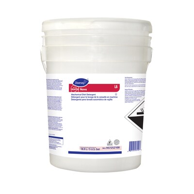 Remove dried-on food from dishes and utensils with this non-chlorinated dishwashing liquid. It works with single- and multi-tank warewashing machines and is concentrated to extend replenishment time. Even in hard water conditions, Diversey SUMA NOVA L6 detergent prevents the machine from scaling, which reduces the possibility of transferring residue onto clean dishes.