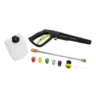 - Includes a 34-inch extension wand, 20-foot high pressure hose, 35-foot power cord with GFCI protection, garden hose adaptor, needle clean-out tool