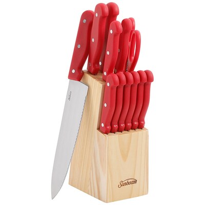 Sunbeam Westmont 13-Piece Cutlery Set with Pinewood Block, Red (112054.13)
