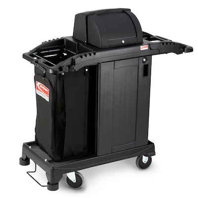 The compact premium housekeeping cart by Suncast Commercial is a secure cart with a variety of storage and organization options. With a lockable hood and lockable front door, you can store your important items may need to stay out of sight and secure, while getting your duties done. The included spacious standard bag can be used for collecting laundry or linens. This is the perfect cart for all of your janitorial and housekeeping needs.