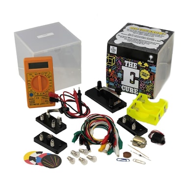 The E Cube has Everything from our 4 most popular kits: Telegraph Kit, Color Theory, Simple Circuit and Conduction Experiment