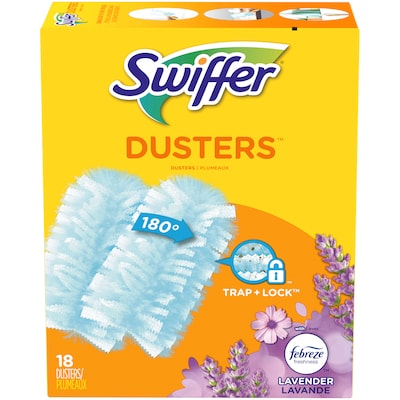 Swiffer Dusters TRAP + LOCK dust & allergens*. Made with specially coated fibers that grab onto dust & don't let go. They are uniquely designed to Trap + Lock dust from even the tight spaces in your home. *common inanimate allergens from cat and dog dander & dust mite matter