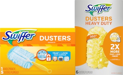 - Bundle contains one Swiffer Dusters starter kit and one heavy-duty duster cloth refills (6/pack)