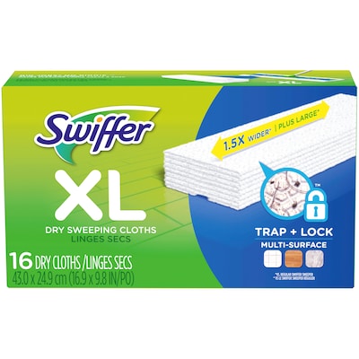 Supplement a flat mop with these extra-large dry-sweeping cloth refills to clean dirty floors. Thick ridges effectively trap dust, hair and other particles while ensuring safe use on various surfaces such as tiles, marble, laminate and vinyl. This 16-pack of disposable Swiffer Sweeper XL dry-sweeping cloth refills offers plenty on hand for cleaning in a workplace or residential building.