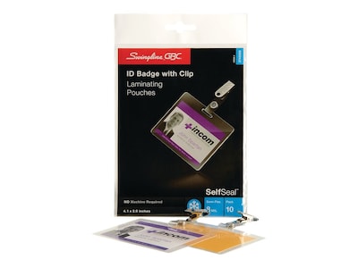Protect badges from moisture, rips and other damage with this 10-pack of Swingline GBC SelfSeal ID-size 8-mil self-adhesive cold laminating pouches.