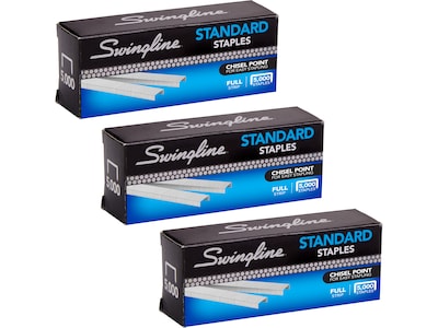 Swingline Standard Staples, 1/4" Length, 210 Per Strip, 5,000/Box, 3 Boxes (S7035104)