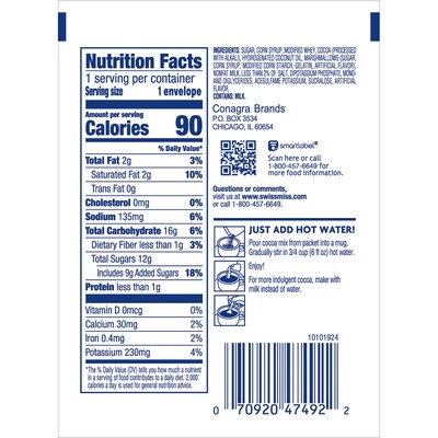 Swiss Miss No Sugar Added Cocoa, 0.55 Oz., 24/Box (HUN55584)