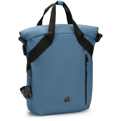 Swissdigital LAMONE Rolltop Laptop Compatible Backpack The Swissdigital LAMONE M Backpack is a sleek and compact rolltop backpack designed for modern-day convenience and functionality. Crafted from eco-friendly, water-resistant fabric, this dark blue backpack offers durability and sustainability for everyday use. It features multiple compartments, including a padded laptop pocket that fits devices up to 14 inches, a main compartment accessible via rolltop or side zipper, and additional pockets for organized storage. The built-in USB charging port allows for on-the-go charging, while an RFID protection pocket ensures the security of sensitive information. Designed for comfort, this non-rolling backpack is lightweight and versatile, making it ideal for commuting, travel, or daily activities. Its ergonomic design, combined with a dedicated power bank pocket and water bottle holder, ensures both convenience and practicality. With its stylish and functional design, the Swissdigital LAMONE M Backpack is a perfect blend of innovation and everyday utility.