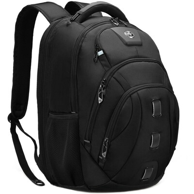 The Swissdigital Design SD1644FB-01 is a versatile backpack designed for both students and professionals. It features a large compartment capable of accommodating a 17" laptop, along with RFID-blocking pockets to protect personal information. The backpack includes an integrated USB charging port and a dedicated power bank pocket for convenient device charging on the go. Comfort is ensured with padded, adjustable shoulder straps and a breathable back panel. Additional features include a TSA-friendly design for hassle-free airport security checks, multiple exterior compartments for organized storage, and a water bottle holder. Its black color and durable material make it a practical and stylish choice for daily use.
