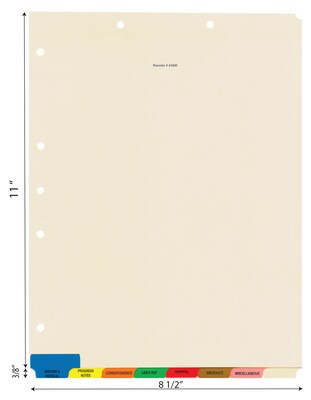 - Seven-hole punched and ready for use. Eight bottom tabs