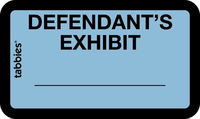 Order Tabbies Defendant's Exhibit Pre-Printed Labels, 1" x 1-5/8", Blue, 252 Labels/Pack (58093) today at Quill.com and get fast shipping. Stack coupons to get free gifts & extra discounts!