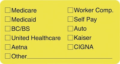 Tabbies® Insurance label in yellow color made to indicate insurance coverage provider that are created for medical office use to convey vital information quickly and easily.