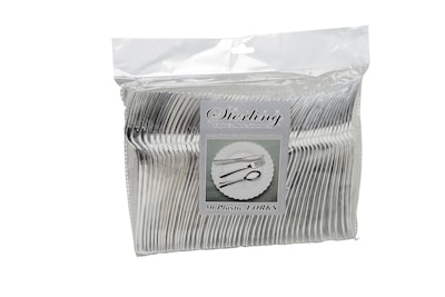 Table Mate Packaged Sterling Heavy Duty Plastic Forks, 50/Ct (8305F-SV)