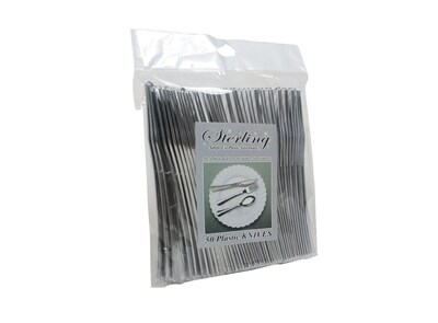 Table Mate Packaged Sterling Heavy Duty Plastic Knives, 50/Ct (8305K-SV)