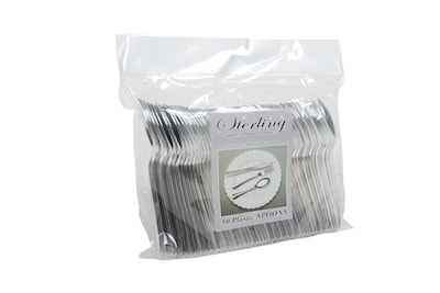Table Mate Packaged Sterling Heavy Duty Plastic Spoons, 50/Ct (8305S-SV)