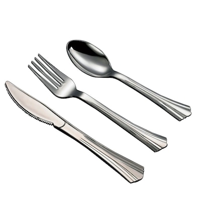 Table Mate Plastic Assorted Cutlery, Medium-Weight, Sterling Silver, 50/Pack (8305A-SV)