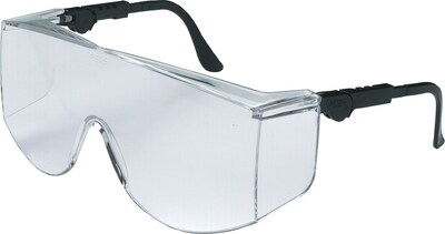 Tacoma® Safety glasses in clear color have black frame and are made of polycarbonate material with Duramass® scratch-resistant coating. Glasses have gel nosepiece, nylon temple sleeve and breakaway cord.