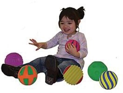 • Set of 6 balls features bright colors, fascinating contours and a little 'squeak' for sensory learning