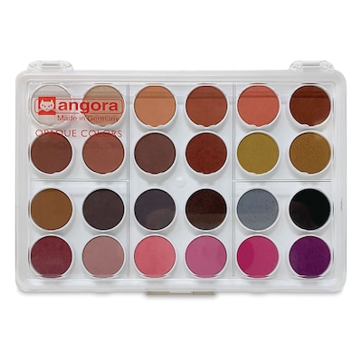 These high-quality, non-toxic Angora Watercolors come in durable, hinged plastic boxes with opaque color tablets, ideal for home and school use.