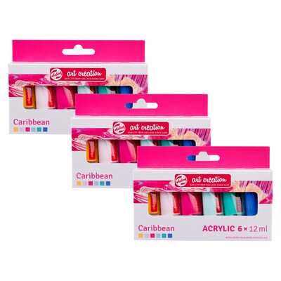 Talens Art Creation Acrylic Paint, Assorted Colors, 12mL, 6/Set, 3 Sets/Bundle (TLN9021863M-3)