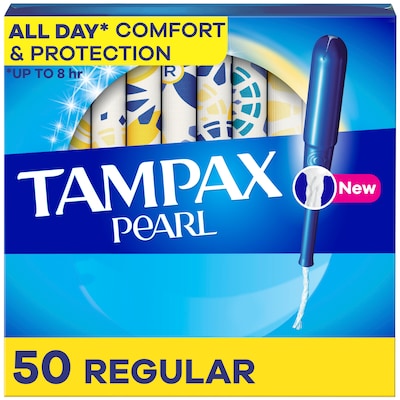 Tampax Pearl Regular Absorbency Tampons, Plastic Applicator, 50/Pack (71135)
