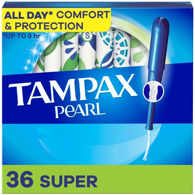 Tampax Pearl Super Absorbency Cotton Tampons, Plastic Applicator, 36/Pack (00370)